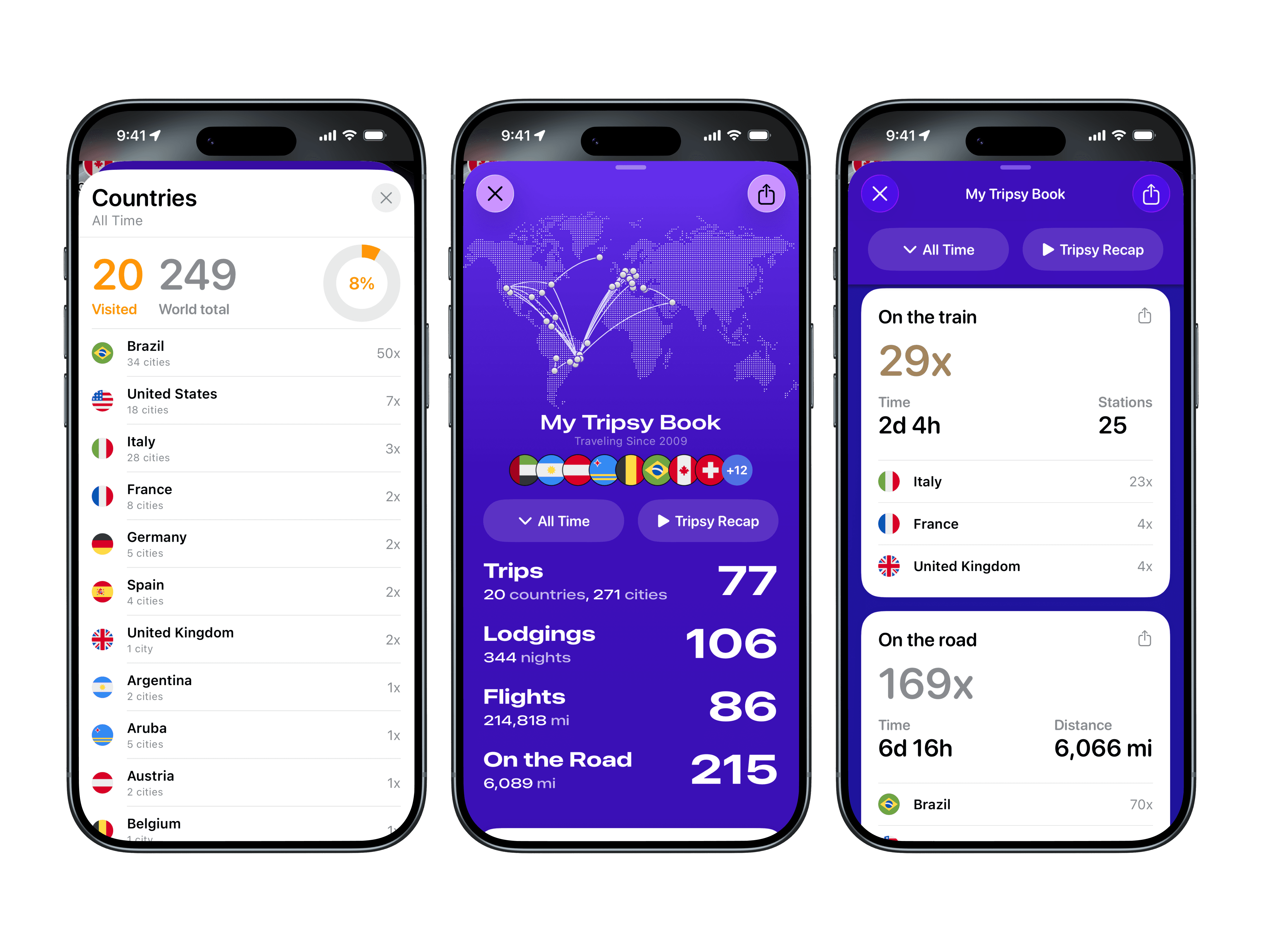 Tripsy Recap is an annual travel summary that analyzes your trips and turns them into insights, highlights, and comparisons.…read more