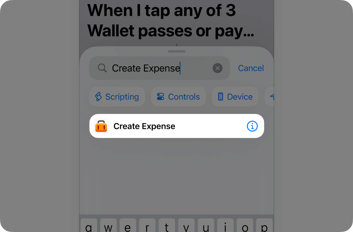 Set up an Apple Shortcut Automation so that every time you use Apple Pay, the transaction is instantly added to your trip expenses log — no need to remember or enter it manually!